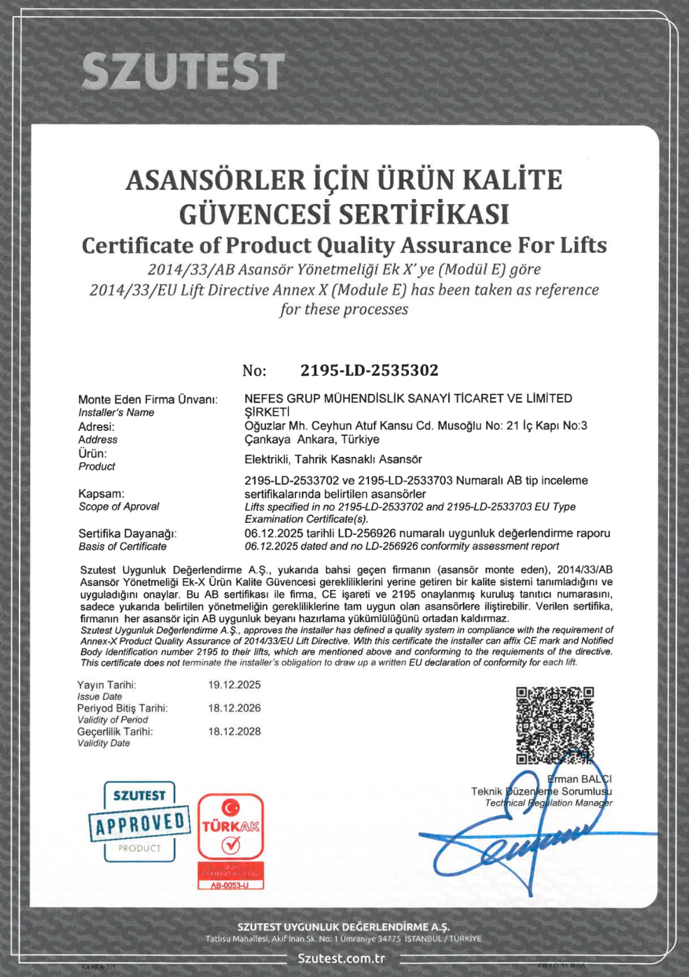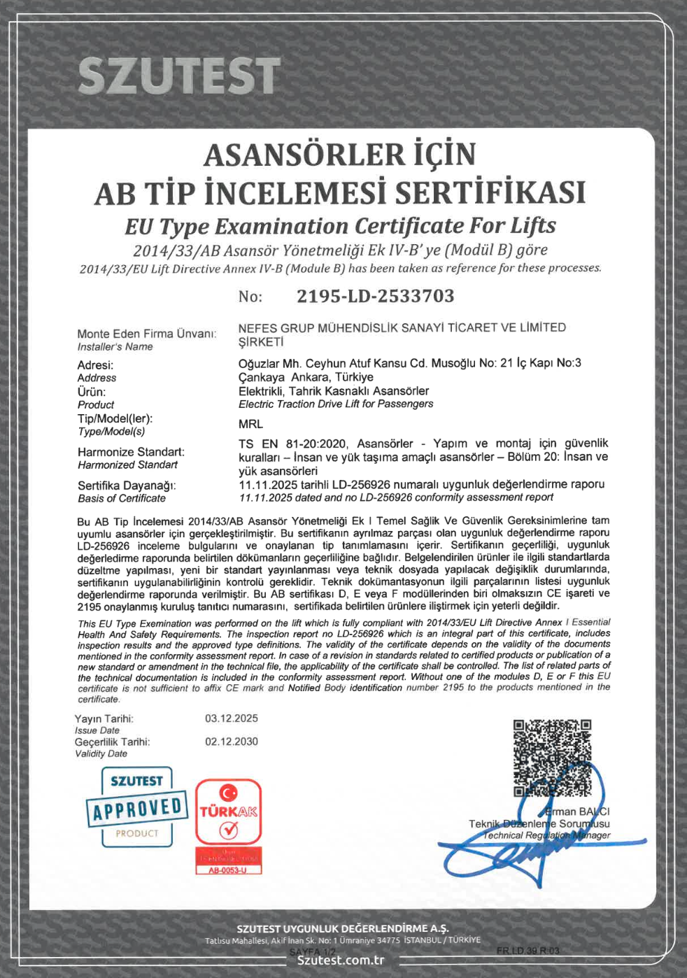 Firmamızın kurucu ve teknik kadrosu, Makina Mühendisleri Odası bünyesinde asansör kontrol mühendisi olarak görev almış, sahaya ve mevzuata hâkim profesyonellerden oluşur. Tüm çalışmalarımız, yürürlükteki yönetmelik ve teknik standartlara uygun şekilde yürütülür.